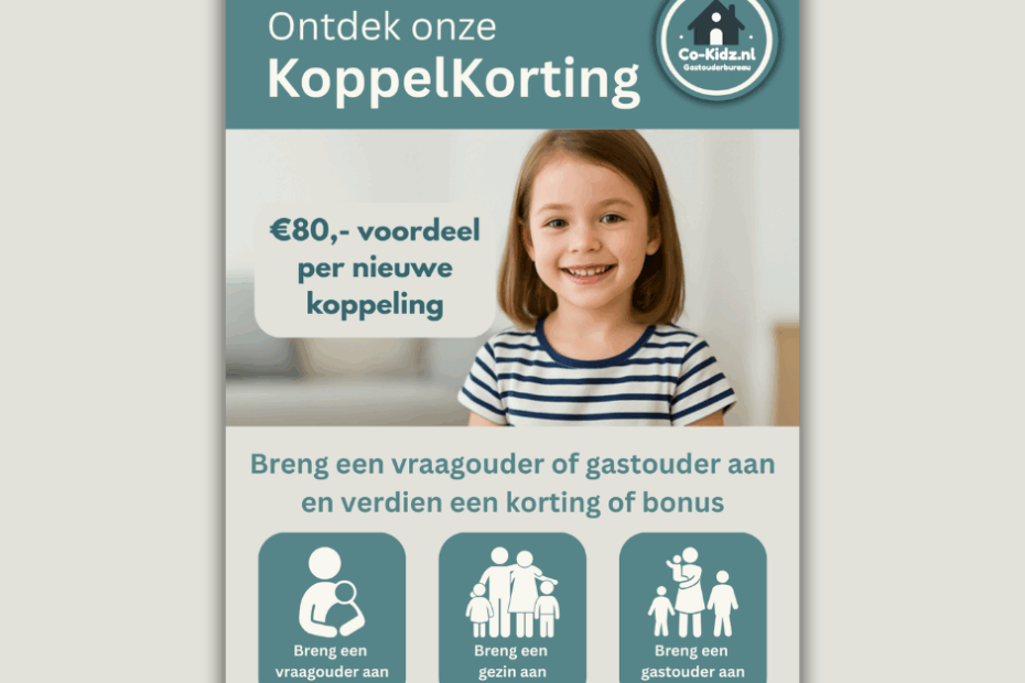 Breng een nieuwe ouder of gastouder aan en profiteer samen van de koppelkorting. Zo bouwen we met elkaar aan een sterk netwerk van betrokken opvang.